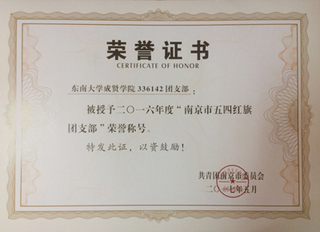 2017.6,糖心视频 336142团支部荣获“南京市五四红旗团支部”荣誉称号