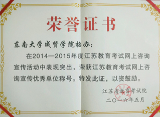 2016.5,我院招办荣获“江苏教育考试宣传优秀单位”称号