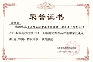 2016.1,《成贤报》两件作品获江苏省高校校报优秀作品