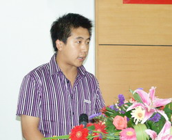 毕业生代表胡伟一同学在发言 |