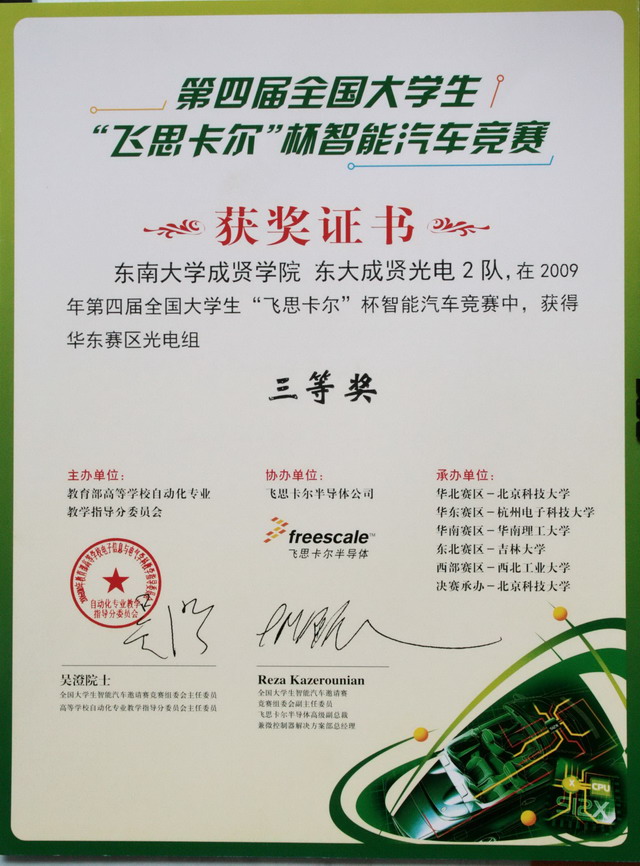 2009年“飞思卡尔”杯第四届全国大学生智能汽车比赛