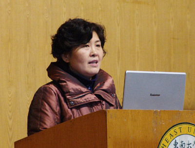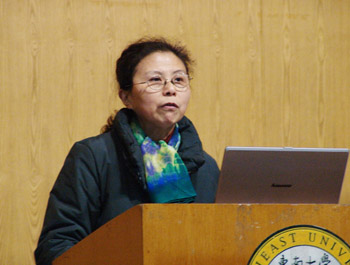 电子工程系主任路兆梅在会上汇报小组讨论情况 土木工程系主任蓝宗建在会上汇报小组讨论情况