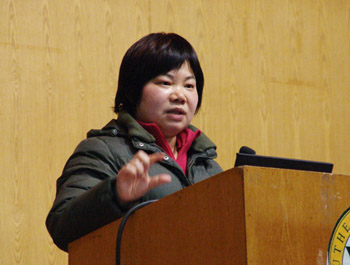 电工电子实验中心副主任于维顺在会上发言 物理教研室主任陈小凤在会上发言