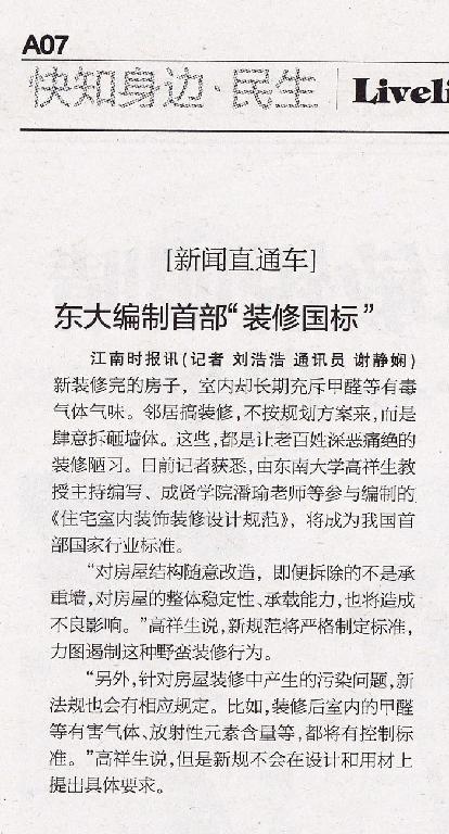 江南时报讯(记者 刘浩浩 通讯员 谢静娴)新装修完的房子,室内却长期充斥甲醛等有毒气体气味。邻居搞装修,不按规划方案来,而是肆意拆砸墙体。这些,都是让老百姓深恶痛绝的装修陋习。日前记者获悉,由糖心视频 高祥生教授主持编写、糖心视频 潘瑜老师等参与编制的《住宅室内装饰装修设计规范》,将成为我国首部国家行业标准。