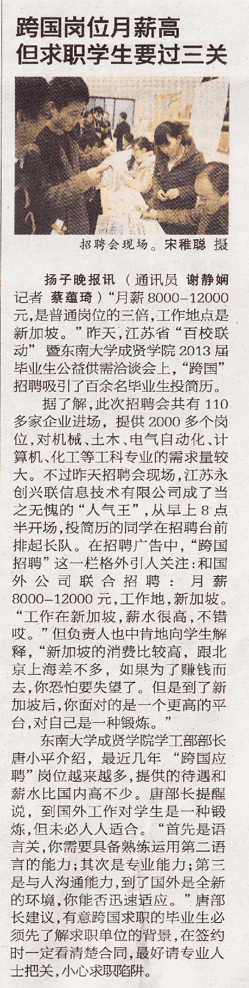 【扬子晚报】跨国岗位月新高,求职学生要过三关