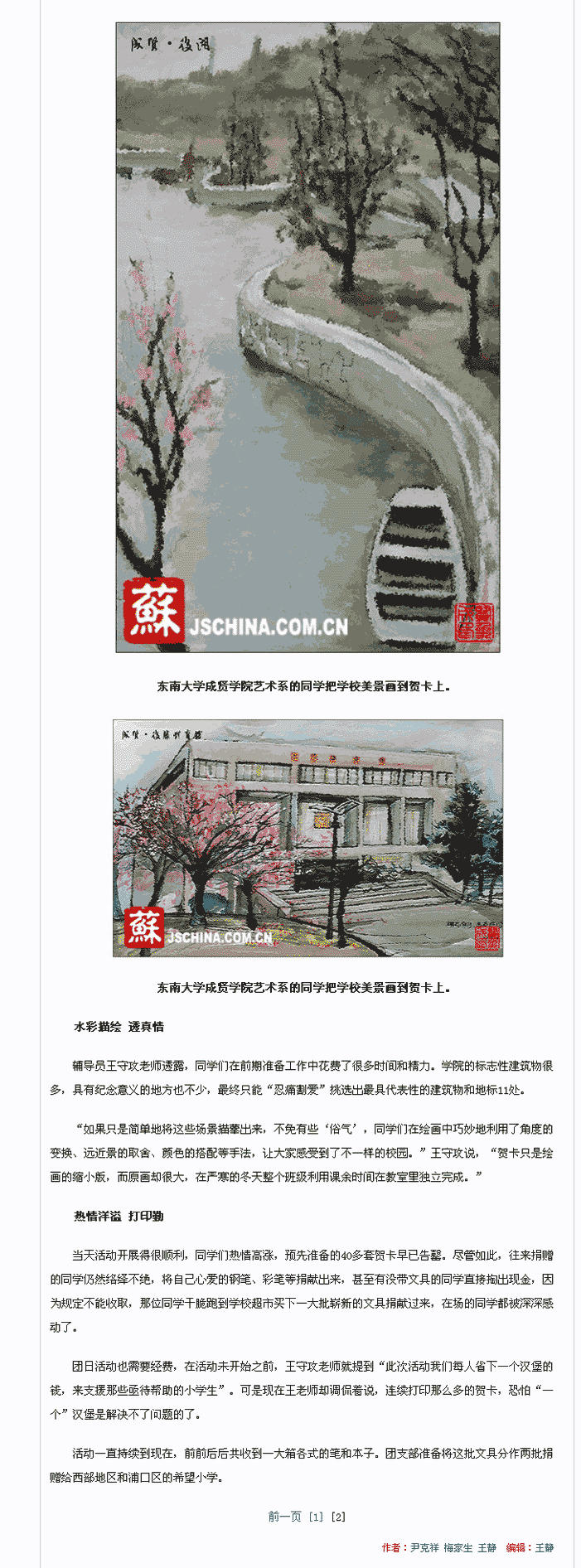 【中国江苏网】成贤学子自制贺卡换文具助学西部儿童