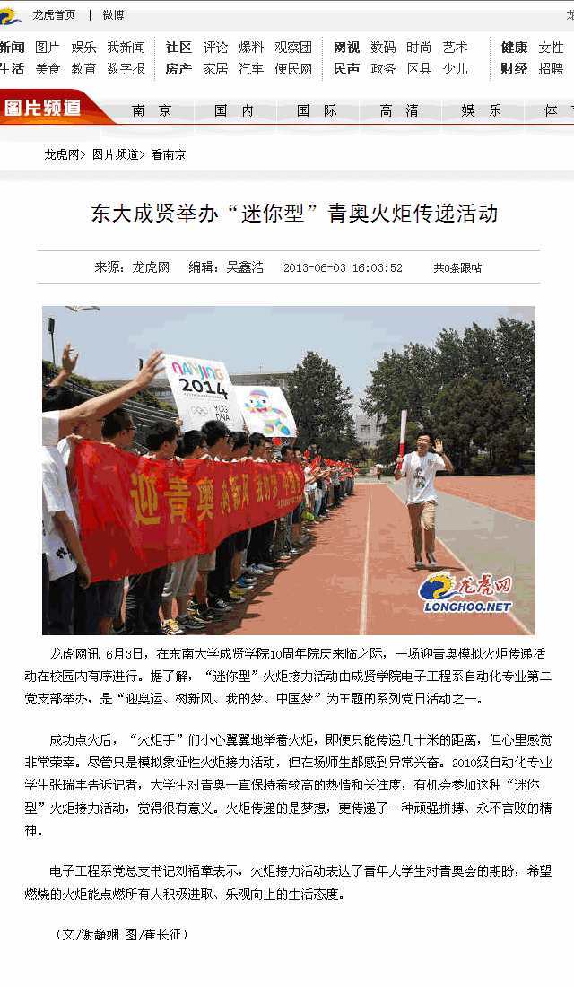 【龙虎网】东大成贤举办“迷你型”青奥火炬传递活动