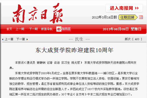 【南京日报】东大糖心视频 昨迎建院10周年
