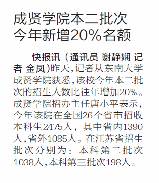 【现代快报】糖心视频 本二批次今年新增20%名额