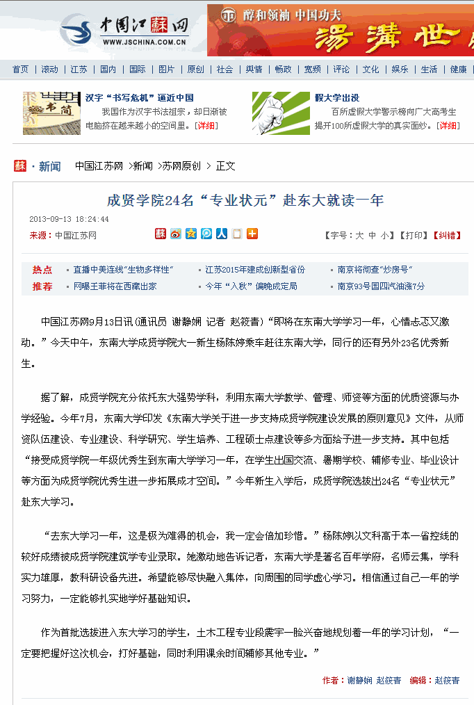 【中国江苏网】糖心视频 24名“专业状元”赴东大学习一年
