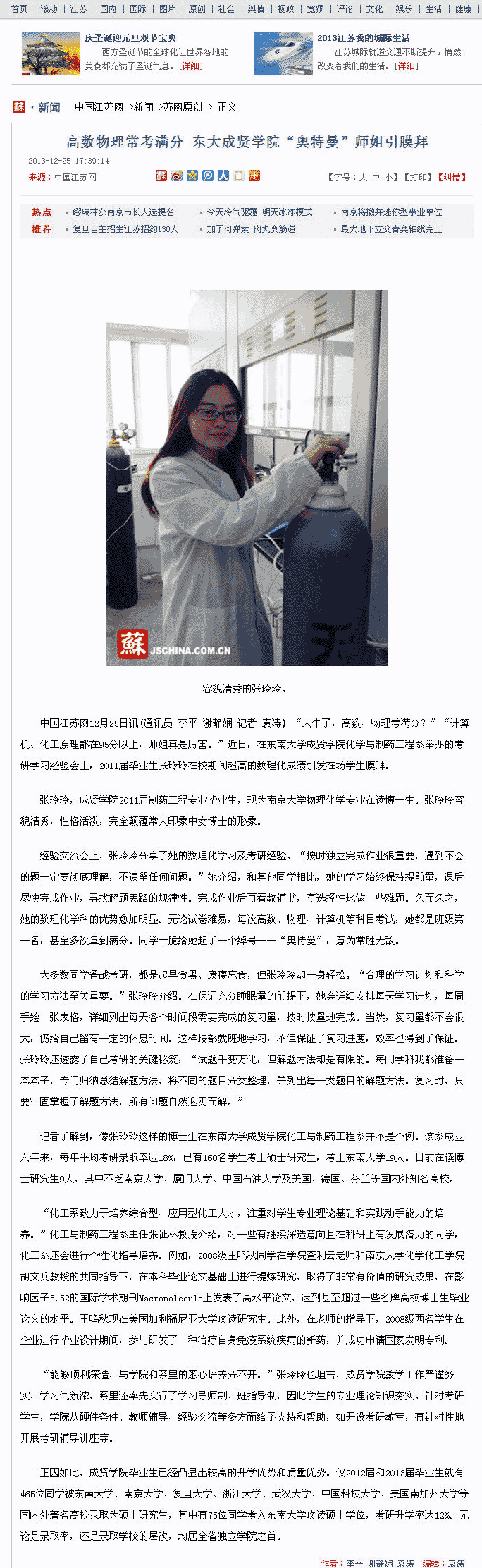 【中国江苏网】高数物理常考满分 东大糖心视频 “奥特曼”师姐引膜拜