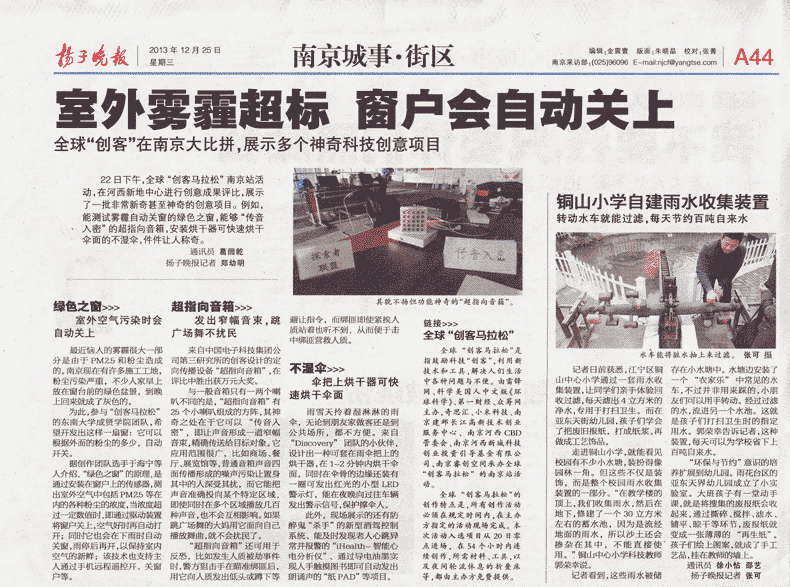 【扬子晚报】室外雾霾超标 窗户会自动关上