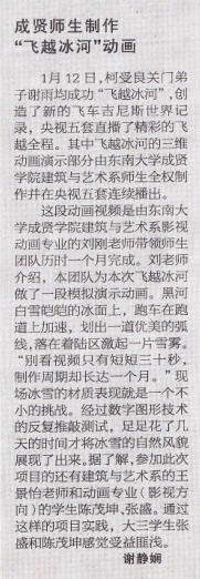 【扬子晚报】成贤师生制作“飞越冰河”动画