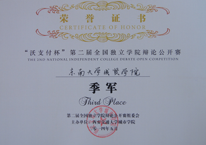 第二届“沃支付杯”全国独立学院辩论公开赛上,我院辩论队获得全国季军。
