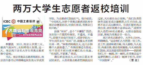 【新华日报】两万大学生志愿者返校培训