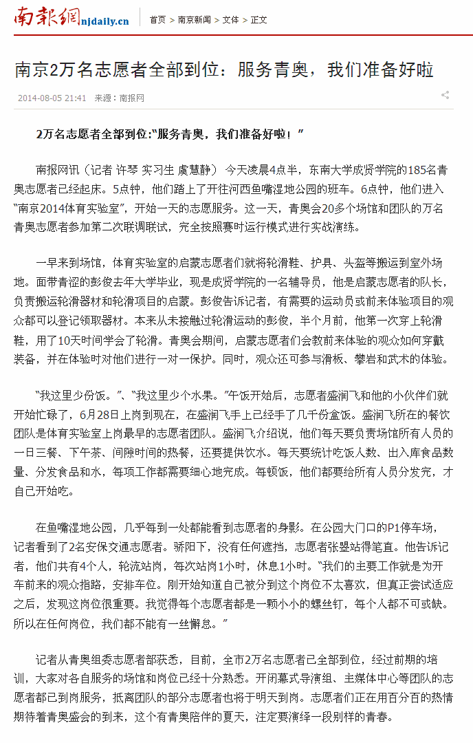 【南报网】 南京2万名志愿者全部到位:服务青奥,我们准备好啦