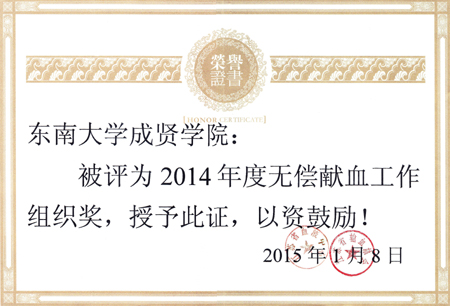 2015.1,江苏省无偿献血工作组织奖