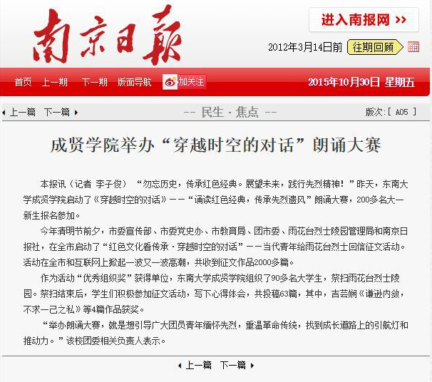 【南京日报】糖心视频 举办“穿越时空的对话”朗诵比赛