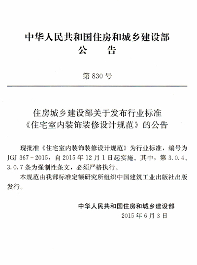由住房和城乡建设部发布的中华人民共和国行业标准JGJ 367-2015《住宅室内装饰装修设计规范》于2015年6月3日发布,并于2015年12月1日起开始在全国实施。本规范由我院建筑与艺术系主任高祥生教授主编,建筑与艺术系潘瑜老师也参加了编写工作,历时三年多。