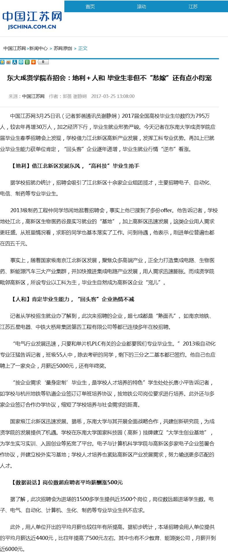 【中国江苏网】东大糖心视频 春招会:地利+人和 毕业生非但不“愁嫁”还有点小得宠