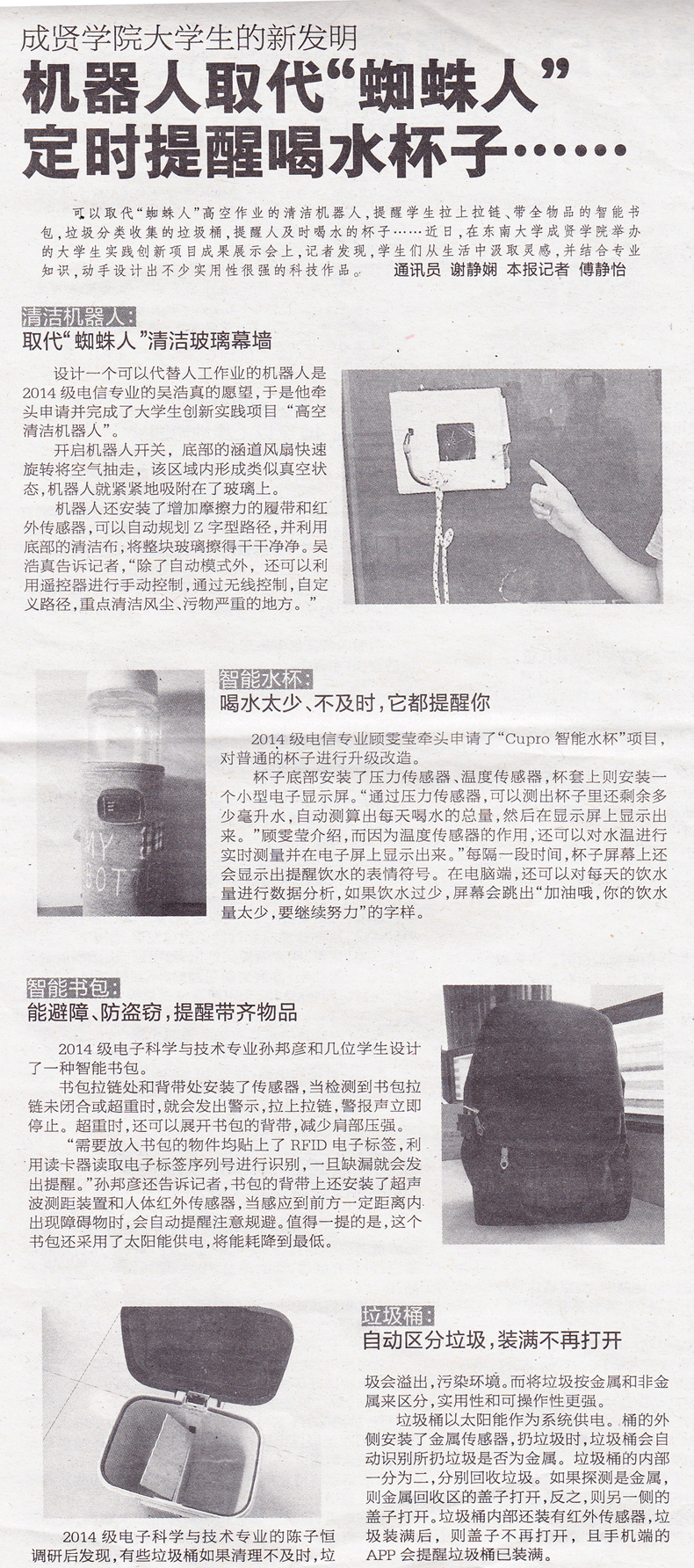 【东方卫报】糖心视频 大学生的新发明 机器人取代“蜘蛛人” 定时提醒喝水杯子……