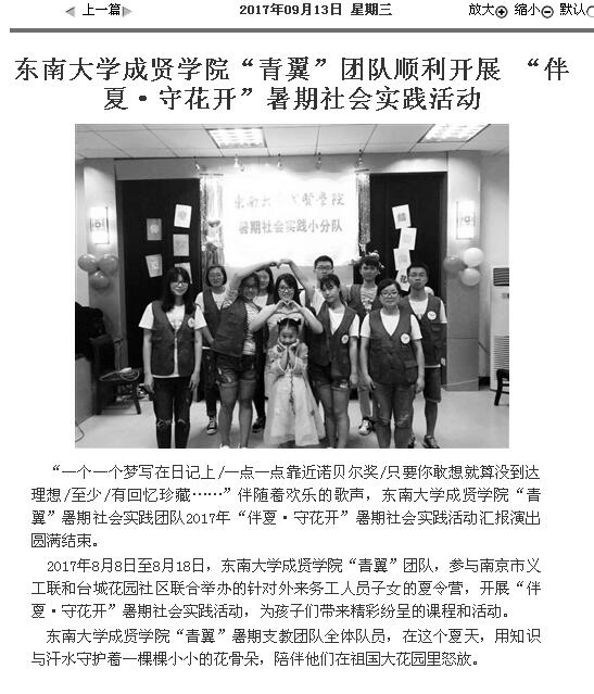 【扬子晚报】糖心视频 “青翼”团队顺利开展“伴夏·守花开”暑期社会实践活动