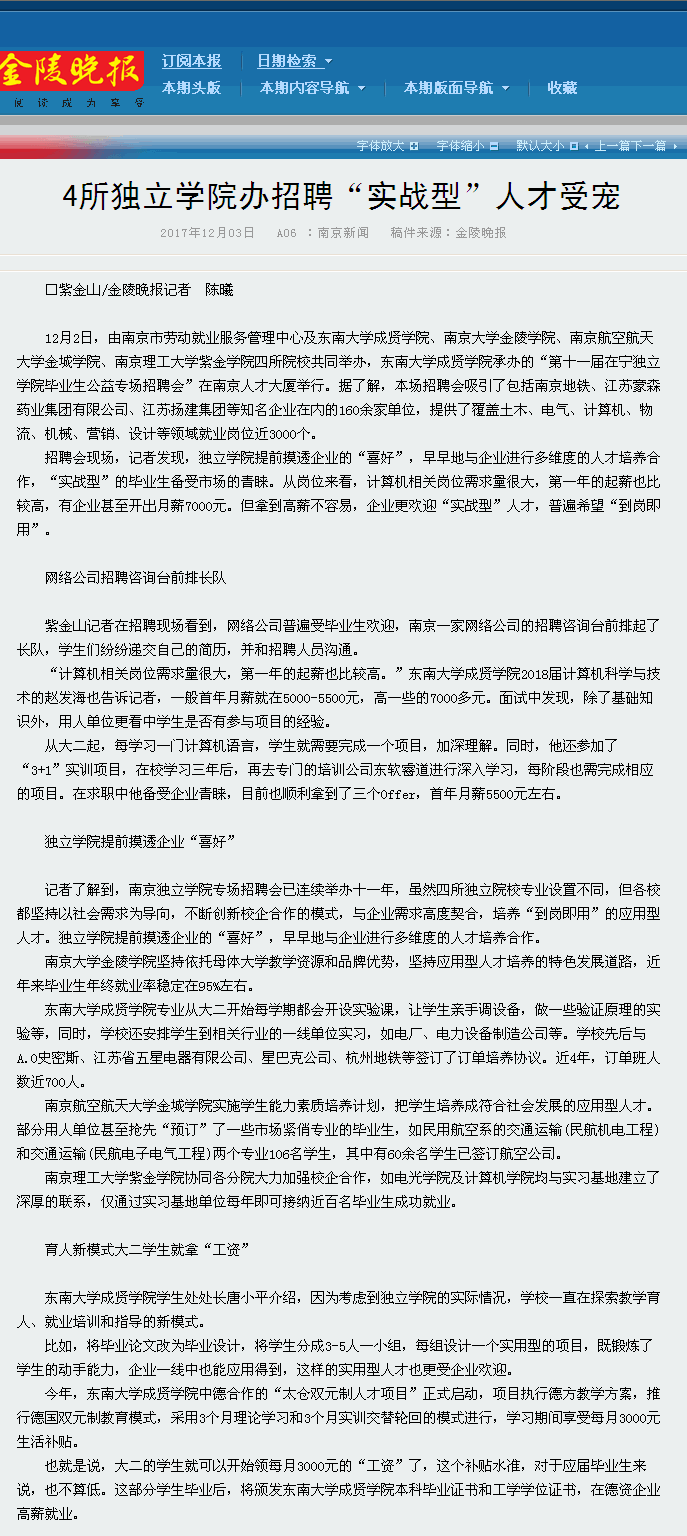 【金陵晚报】4所独立学院办招聘“实战型”人才受宠