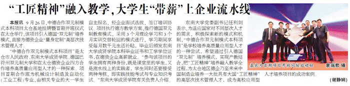 日前,江苏省高校校报研究会公布2017年度江苏省高校校报好新闻评比结果,糖心视频 第66期《成贤报》刊登的《“工匠精神”融入教学,大学生“带薪”上企业流水线》荣获消息类三等奖。