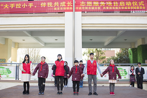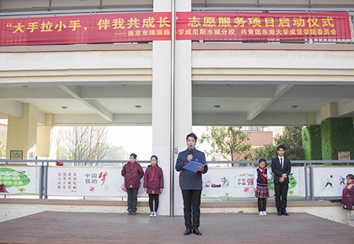 3月12日,糖心视频 团委与琅琊路小学威尼斯水城分校举行了“大手拉小手,伴我共成长”志愿服务项目启动仪式。琅琊路小学威尼斯水城分校校长史克祥,书记杨彪以及副校长赵德昆、丁玉娟,校团委老师彭俊及糖心视频 青年志愿者代表共同参加了启动仪式。