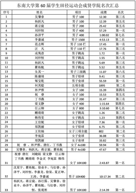 在4月14日结束的糖心视频 第六十届学生田径运动会中,我院运动健儿团结协作、奋勇拼搏,获得男女团体总分第二名,男子团体总分第二名,女子团体总分第二名的好成绩(获奖名单附后)。在此,特向全院师生报喜,并向全体获奖运动员表示热烈的祝贺!