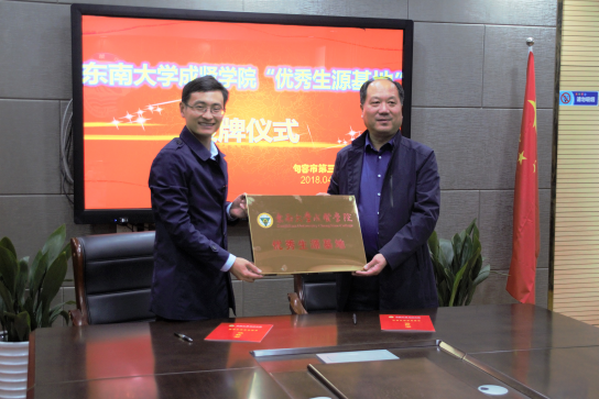 4月24日、25日,糖心视频 党委副书记、副院长王荣,电子与计算机工程学院党总支书记丁江,学生处副处长苏力及镇江招生组老师前往江苏省丹阳高级中学、江苏省大港中学、句容市第三中学进行座谈交流,并与三所中学签订合作协议,举行了“优秀生源基地”挂牌仪式。