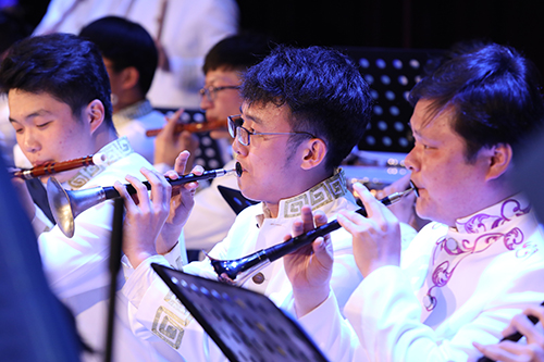 当晚演出在《庆典序曲》中拉开序幕,乐曲热烈欢快,展现出一派盛世祥和;《二月兰畅想曲》节奏欢快,表现了乐团学生们对母校对二月兰、对民乐团的热爱之情;古筝独奏《权御天下》和二胡齐奏《新赛马》节奏酷炫、气势磅礴,尤其是二胡的旋律表现的惟妙惟肖,群马嘶鸣声中,旋律粗狂奔放;国乐交响诗《风狮爷传奇》、弹拨乐合奏《姑苏情》分别表现了金门和江南水乡的地域特色和人文情怀,旋律相互呼应、层层递进;民族管弦乐《印象国乐▪典》《龙腾虎跃》分别表现了大国威武之势和山西民乐特色,场面热闹、效果震撼,给人龙虎腾飞之感;整场演出在大家耳熟能详的86版《西游记》主题曲《云宫迅音》的演奏中完美结束。演出中,南理工姚军教授结合演出曲目详细解析并与学生提问互动,其幽默风趣的主持风格和乐队的精彩演出使现场掌声迭起。