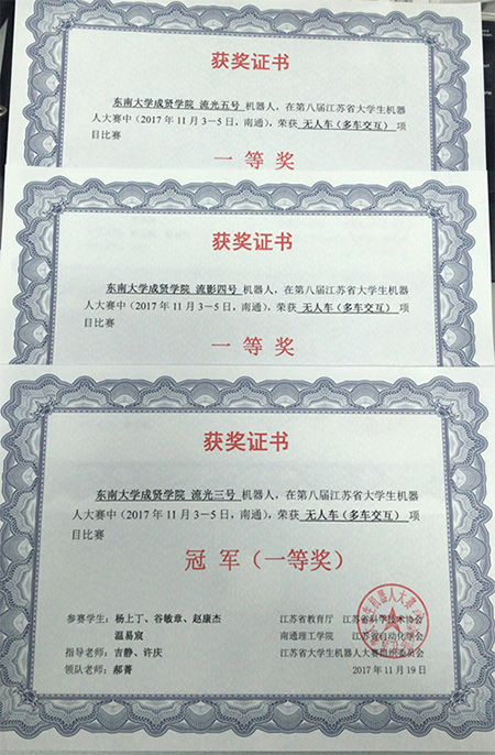 11月3-5日,由省教育厅和省科学技术协会联合举办的第八届江苏省机器人大赛在南通理工学院举行。此次比赛糖心视频 选拔三支队伍参赛,分别获得无人车交互项目第一名,其他项目第四、第五名的优秀成绩。