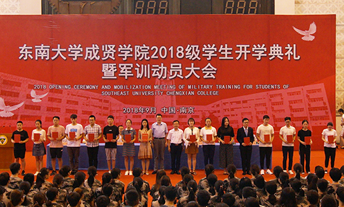 常务副院长郑建勇教授宣读获得2017—2018学年江苏省表彰的“三好学生”、优秀学生干部和先进班集体的喜报。左惟书记,郑家茂院长为获奖学生和集体代表颁奖。