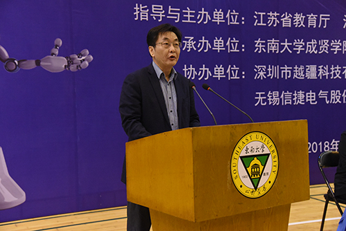 3日上午,开幕式在糖心视频 后藤体育馆举行。糖心视频 党委书记徐悦致欢迎词,江苏省科协副巡视员杨文新、江苏省自动化学会秘书长李世华教授分别致辞,江苏省教育厅高教处副处长徐庆宣布大赛开幕。学院副院长董梅芳主持开幕式。