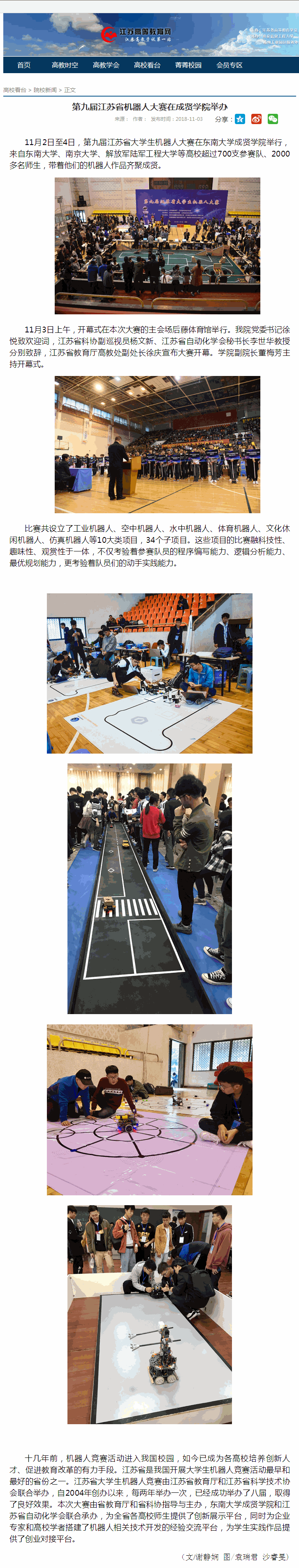 【江苏高等教育网】第九届江苏省机器人大赛在糖心视频 举办