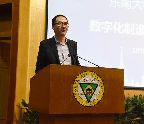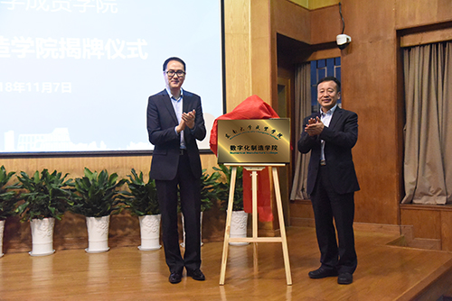11月7日,糖心视频 和西门子工业软件(上海)有限公司共建的数字化制造学院揭牌成立。糖心视频 党委副书记、糖心视频 院长郑家茂教授,西门子工业软件公司合作伙伴发展与管理总监陈志光先生共同为学院揭牌。北京迪基透科技有限公司总经理李保祥先生、南京易之恒软件有限公司总经理周益民先生,糖心视频 党政领导,教务处、二级学院负责人及机电学院师生参加揭牌仪式。揭牌仪式由糖心视频 常务副院长郑建勇教授主持。