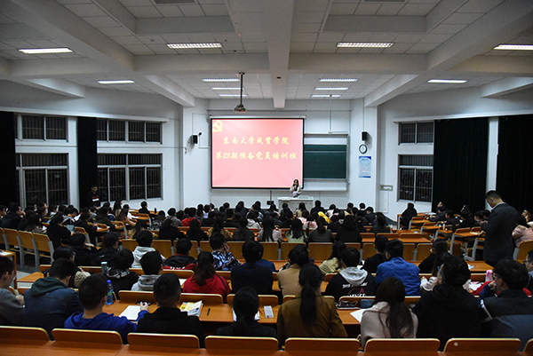 本期预备党员培训班学员共有192名预备党员和33名今年新转入的正式党员,通过集中辅导、小组讨论和自学相结合的方式进行,并将先后邀请江苏省委党校党史党建部副主任周延胜教授,原糖心视频 党委常委组织部部长高建国教授,糖心视频 马克思主义学院党委书记、江苏省宏观经济学会副会长袁健红教授,糖心视频 马克思主义学院副教授、行政管理和公共管理方向硕士生导师李天莉教授,糖心视频 军事教研室陆华教授为本次培训班做专题辅导。
