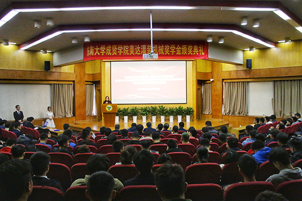 在学校领导的指导和帮助下,在各部门的关心和支持下,机电学院团结拼搏,锐意进取,各项事业稳步前进,彰显了争先创优的良好风尚,涌现出了一批先进个人和先进集体。2018年9月,美达灌装机械有限公司在糖心视频 设立了企业奖学金。经过前期严格评审,20名同学脱颖而出,获得“美达灌装机械”奖学金。彭山宏先生给获奖同学颁奖,鼓励同学们铭记“求真求美,成人成贤”的校训,弘扬“止于至善”的东大精神,在实践中锻炼成才,报效祖国、感恩社会。