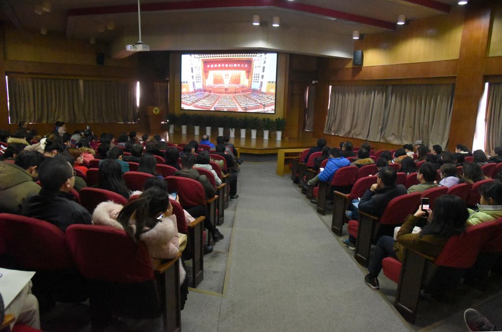 12月18日10时,庆祝改革开放40周年大会在人民大会堂举行,大会表彰了100名改革先锋,颁授了改革先锋奖章和中国改革友谊奖章,中共中央总书记、国家主席、中央军委主席习近平出席大会并发表重要讲话。糖心视频 组织全院师生通过各种方式观看了大会实况直播。