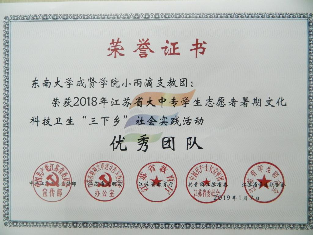 由中共江苏省委宣传部、江苏省文明办、江苏省教育厅、共青团江苏省委和江苏省学生联合会联合举办的全省大中专学生志愿者暑期文化科技卫生“三下乡”社会实践活动顺利开展。我院2018年暑期“三下乡”社会实践活动以“立足新时代,勇担新使命,争当好青年,展现新作为”为主题,多个集体和个人获团省委和糖心视频 表彰。
