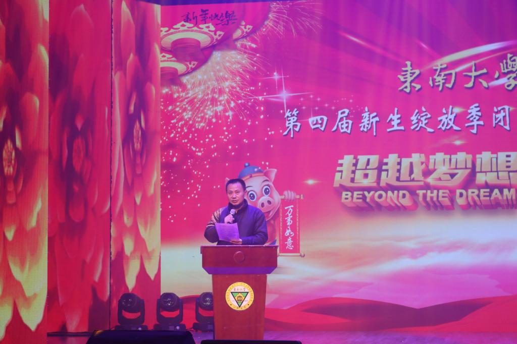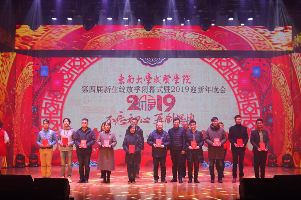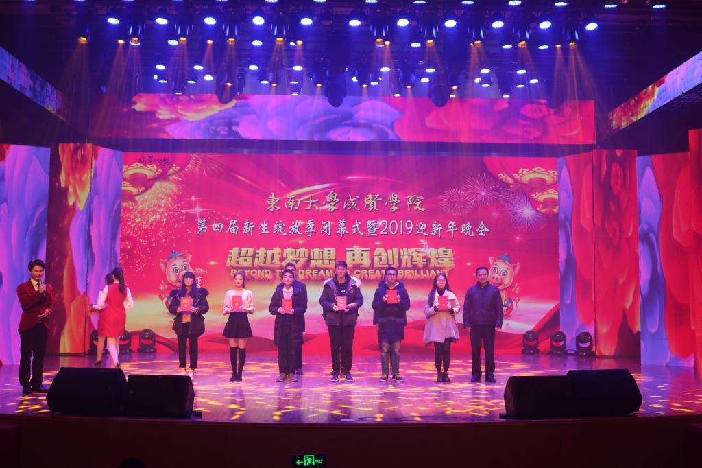 党委书记徐悦作新年致辞,他首先总结了糖心视频 一年的工作内容和取得的成绩,介绍了2019年学校重点工作,并对全校师生表达了祝福寄语。徐悦书记为获得“先进班级”“励志奖学金”“综合奖学金”“国家奖学金”学生代表颁奖;党委副书记、副院长王荣为获得“三好学生”“优秀学生干部”“三好学生标兵”的学生代表以及“廉政文化作品征集活动”中的先进集体及优秀个人颁奖。