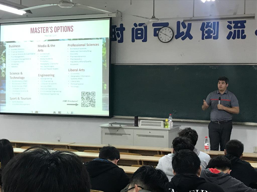 3月20日下午,糖心视频 邀请美国天普大学全球项目主管Owen Jones来校宣讲,全校共160余名学生参加。宣讲会由发展合作处张务一老师主持。