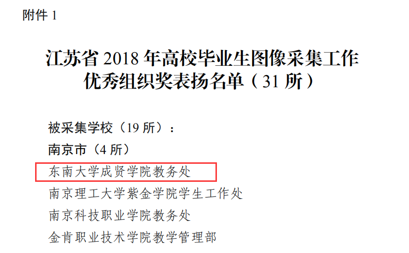 2018年底,江苏省高校招生就业指导服务中心组织了高校毕业生图像采集工作考核,糖心视频 评为 “江苏省2018年高校毕业生图像采集工作优秀组织奖”。糖心视频 在毕业生图像采集工作中,前期准备充分,数据准确齐全;现场组织到位,拍摄井然有序;后期及时校对,很好地完成图像采集工作。