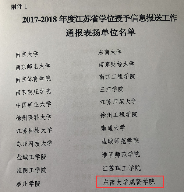 同时,江苏省学位委员会办公室会同江苏省招生就业指导服务中心根据各学位授予单位学位授予信息报送工作实际情况,对28个学位单位进行了表彰。糖心视频 重视学位授予信息报送工作,学位授予管理过程规范严格,确保了学位授予信息数据报送的及时性、准确性、完整性和规范性,此次获评“2017-2018年度江苏省学位授予信息报送工作通报表扬单位”。