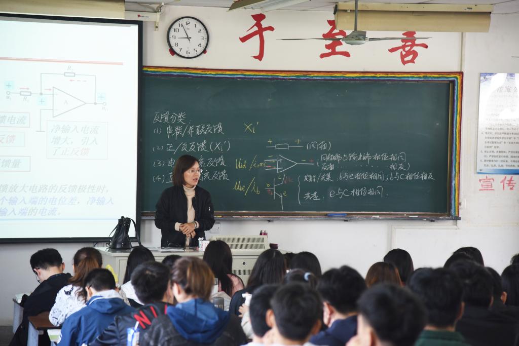 陆清茹老师课堂气氛活跃,深入浅出、娓娓道来,将模电课程中“反馈”这一章节中的理论知识与相关案例紧密结合,对各知识点进行了详细讲解。课堂中,学生们认真聆听记录,并就知识点展开了讨论和答题。在午间研讨会上,陆老师从自身教学内容的设计、教学案例的选择以及重难点的把握跟在座老师们进行了分享。督导专家堵国樑、李新荣,电子与计算机学院院长王晓蔚分别对陆老师的课程进行了点评。他们表示,陆清茹老师在授课过程中教学目标明确,重难点突出,教学方法设计巧妙,新颖独特,逻辑思维清晰,师生互动性强,教学效果良好,体现了自身深厚的理论功底。同时,三位专家对陆老师在教学内容、教学组织等方面也提出了建议,并希望青年教师向陆清茹老师学习,加强个人素养,提升个人魅力,努力提升课堂教学水平和质量。研讨会中,与会老师们纷纷表示受益匪浅,对于课程的组织、案例设计、交流互动、语言表达和多媒体运用等方面有了更深的理解和领悟。