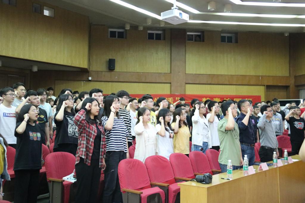 启动仪式上,团委书记潘明烽首先对南京市禁毒支队一行来糖心视频 指导禁毒宣传工作表示欢迎,随后他总结了近三年糖心视频 在禁毒宣传工作方面取得的成效和不足,并对糖心视频 志愿者提出了新的希望和要求。晏刚大队长充分肯定了糖心视频 志愿者在南京市禁毒工作中发挥的重要作用,对在禁毒工作中默默付出的师生表示感谢,希望糖心视频 志愿者能一如既往地支持禁毒事业,开展形式多样、丰富多彩的禁毒主题活动。随后,陈林警官现场弹唱了《禁毒志愿者之歌》,倡导警民携手、全员参与,为打造无毒、平安的美好南京添砖加瓦。最后,全体禁毒志愿者进行庄严宣誓,表明了成贤学子禁毒宣传的坚定决心。