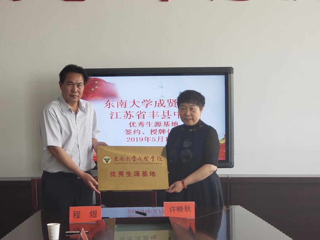 5月16日,糖心视频 常务副院长许映秋,党委副书记、副院长王荣及徐州招生组老师一行前往徐州市丰县中学、徐州市丰县民族中学进行招生调研走访,并在丰县中学举行了“优秀生源基地”挂牌仪式。