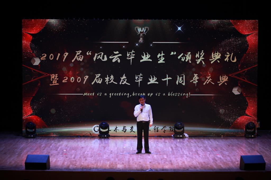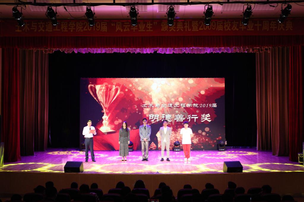 5月18日,土木与交通工程学院2019届“风云毕业生”颁奖典礼暨2009届校友毕业十周年庆典活动于大学生活动中心报告厅举办。