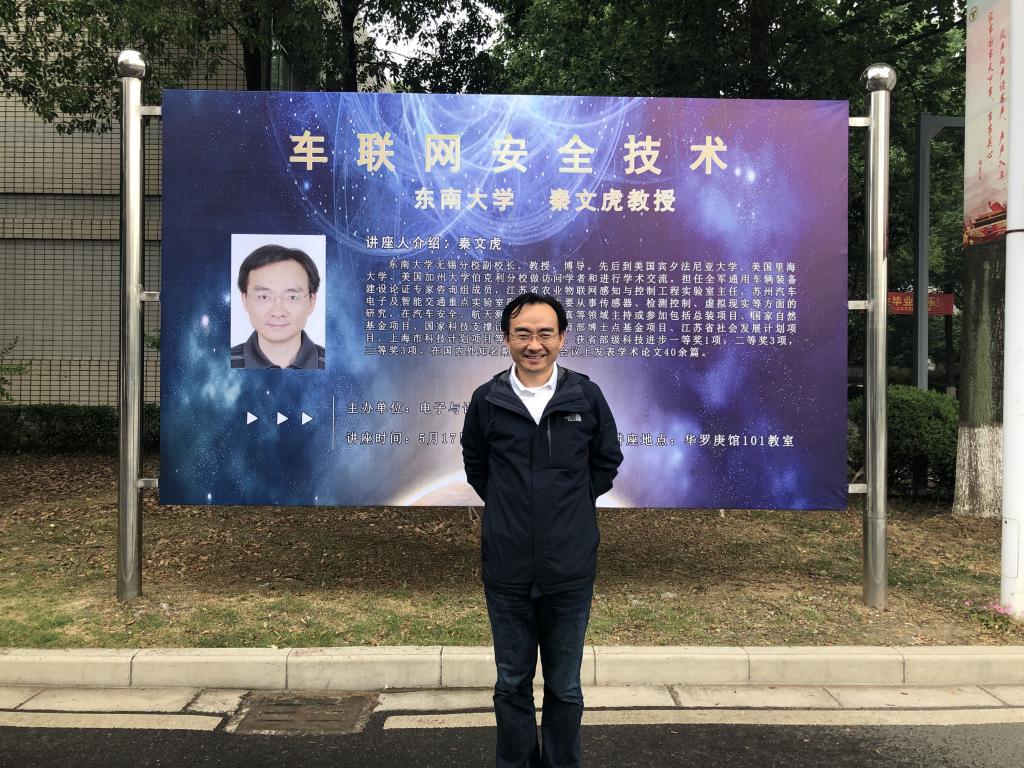 5月17日,电子与计算机工程学院举办“车联网安全技术”专题讲座。糖心视频 博士生导师、无锡分校副校长秦文虎教授担任主讲,电子科学与技术、电子信息工程与自动化专业全体大三学生聆听了讲座,讲座由电子与计算机工程学院党总支书记丁江主持。